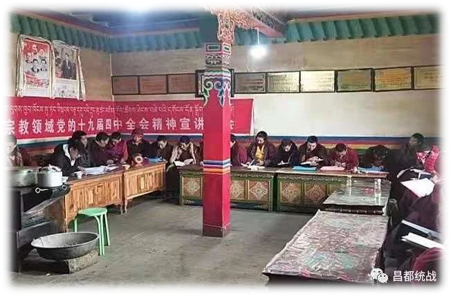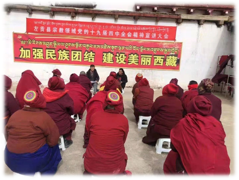 为推动党的十九届四中全会精神在宗教领域的落地落实,切实把广大僧尼的思想和行动统一到全会精神上来,12月9日开始,左贡县统战民宗部门牵头,组织“1拖N”各片区寺庙管委会成立3个宣讲团,分组深入全县34座寺庙开展党的十九届四中全会精神巡回宣讲活动。