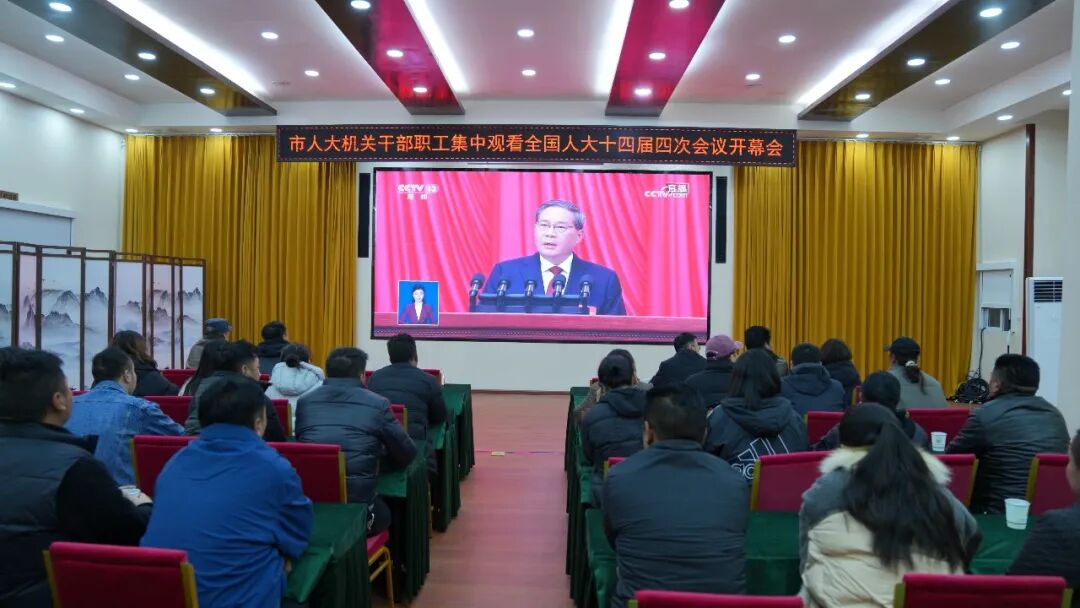春风里的共鸣——昌都市各族各界干部群众收听收看十四届全国人大四次会议开幕盛况