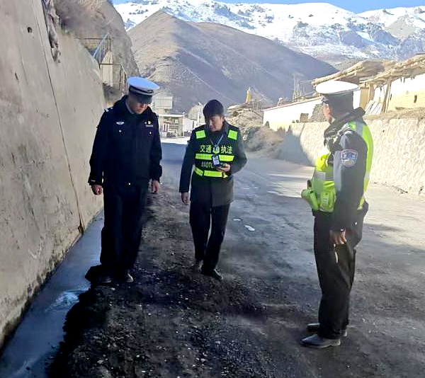 为切实做好冬季道路交通安全管理工作,有效预防和减少道路交通事故的发生。近日,左贡县公安局交通管理大队联合县交通运输局聚焦冬季低温、雨雪、冰冻等恶劣天气带来的通行风险,深入辖区318国道开展道路交通安全隐患排查,切实抓实抓牢冬季道路交通安全防线。
